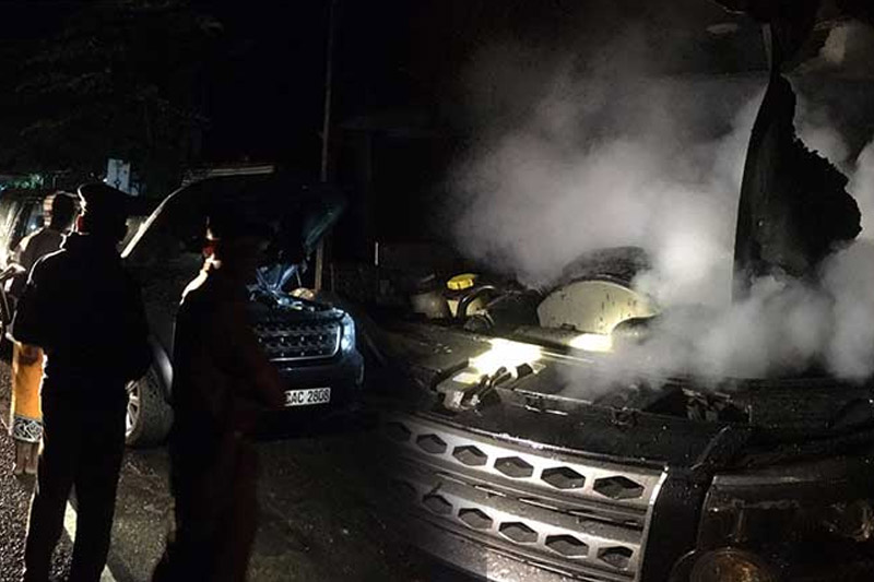 රාජ්ය ඇමති චාමර ගමන්කළ රථය එක්වරම ගිනිගනී