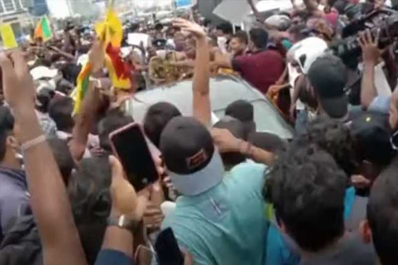 'කවුරුවත් ගහන්න එපා' - විරෝධයට වෙට්ටු දැමූ වාහනය පිටත් කර හරියි (VIDEO)