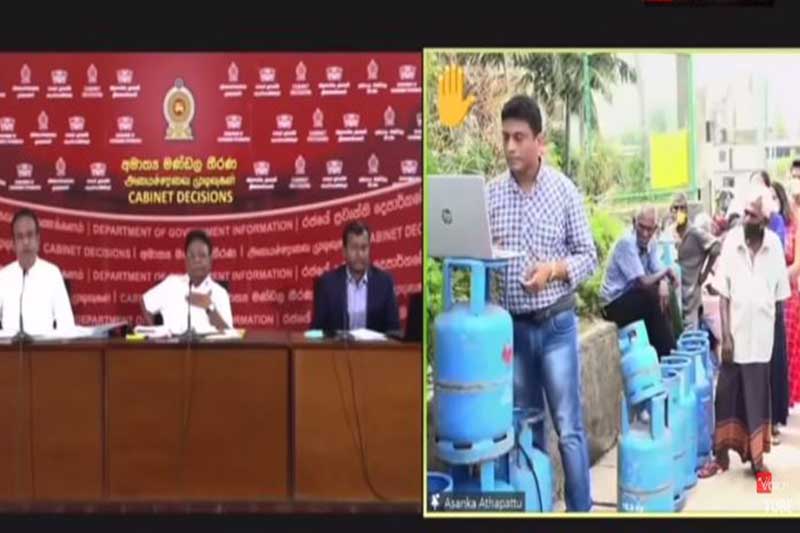 ගෑස් පෝළිමේ සිට මාධ්යවේදියාගෙන් කැබිනට් හමුවට ප්රශ්නයක් - ආණ්ඩුවේ අනාගත දැක්ම මේකද ? (VIDEO)
