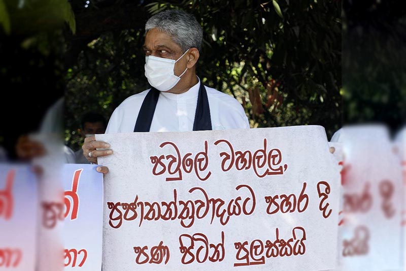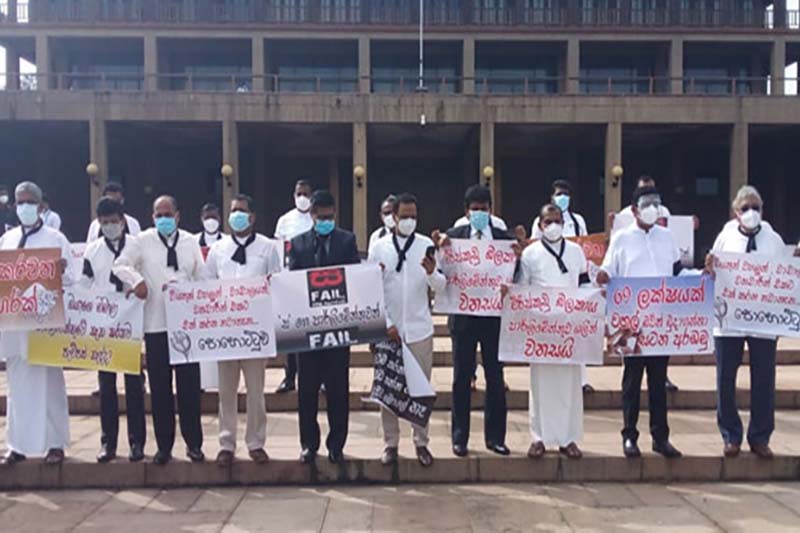 ආණ්ඩුවේ ප්රචණ්ඩත්වට විරෝධය දක්වමින් සජබ මන්ත්රීවරු පාර්ලිමේන්තුව ඉදිරිපිට විරෝධයක (VIDEO)