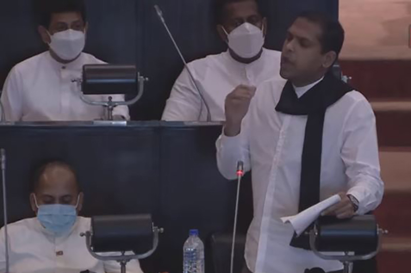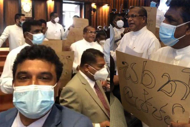 "ලැජ්ජයි සරත් ලැජ්ජයි" පාර්ලිමේන්තුව උණුසුම් කරමින් සජබ විරෝධයේ (VIDEO)